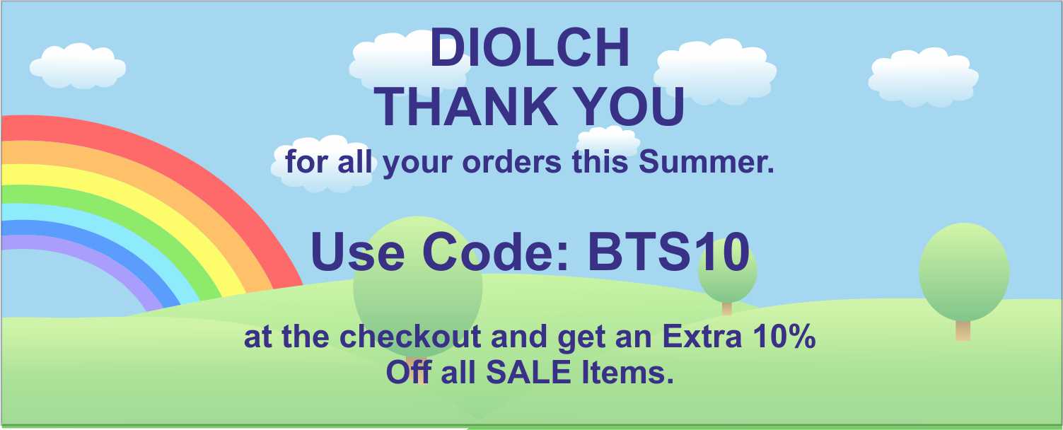 Diolch Thank you for all your orders over the Summer. To Celebrate the kids going back to school get an extra 10% Off all Sale items until 5/9/25. Use Code: BTS10